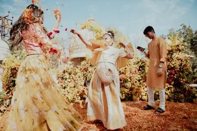 Shooting a Canadian couple's wedding in Udaipur was an incredible experience, made even more special by the collaboration with a talented Canadian photography team. The teamwork was nothing short of amazing, with everyone coming together to capture the magic of each moment. The couple put a lot of thought into every detail, from the mesmerizing decor at their unforgettable wedding reception to the vibrant Haldi ceremony. Every event was a testament to their vision, making the celebration truly spectacular. It was a joy to be part of such a beautifully crafted wedding, where every element came together perfectly.